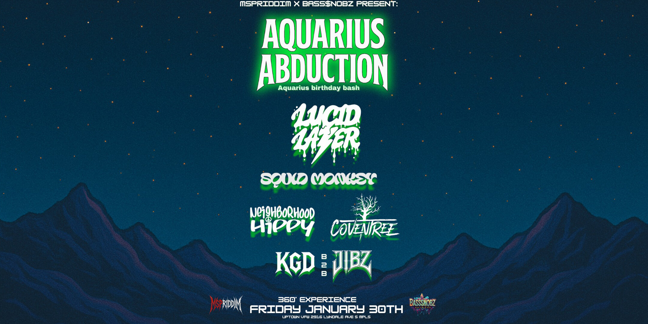 mspriddim x bass$nobz present: AQUARIUS ABDUCTION - Aquarius birthday bash
