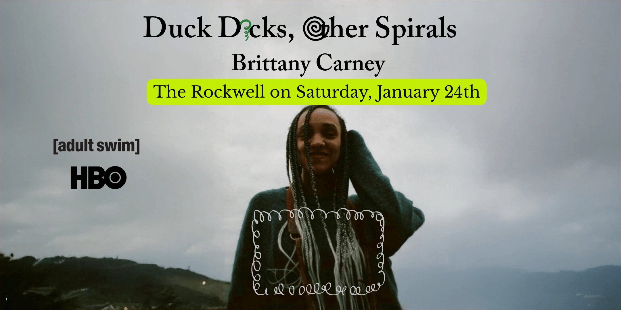 Brittany Carney (Adult Swim, HBO’s Fantasmas) builds a new hour of jokes, some of which involve spirals. Vertigo-free zone. Judge-free zone.