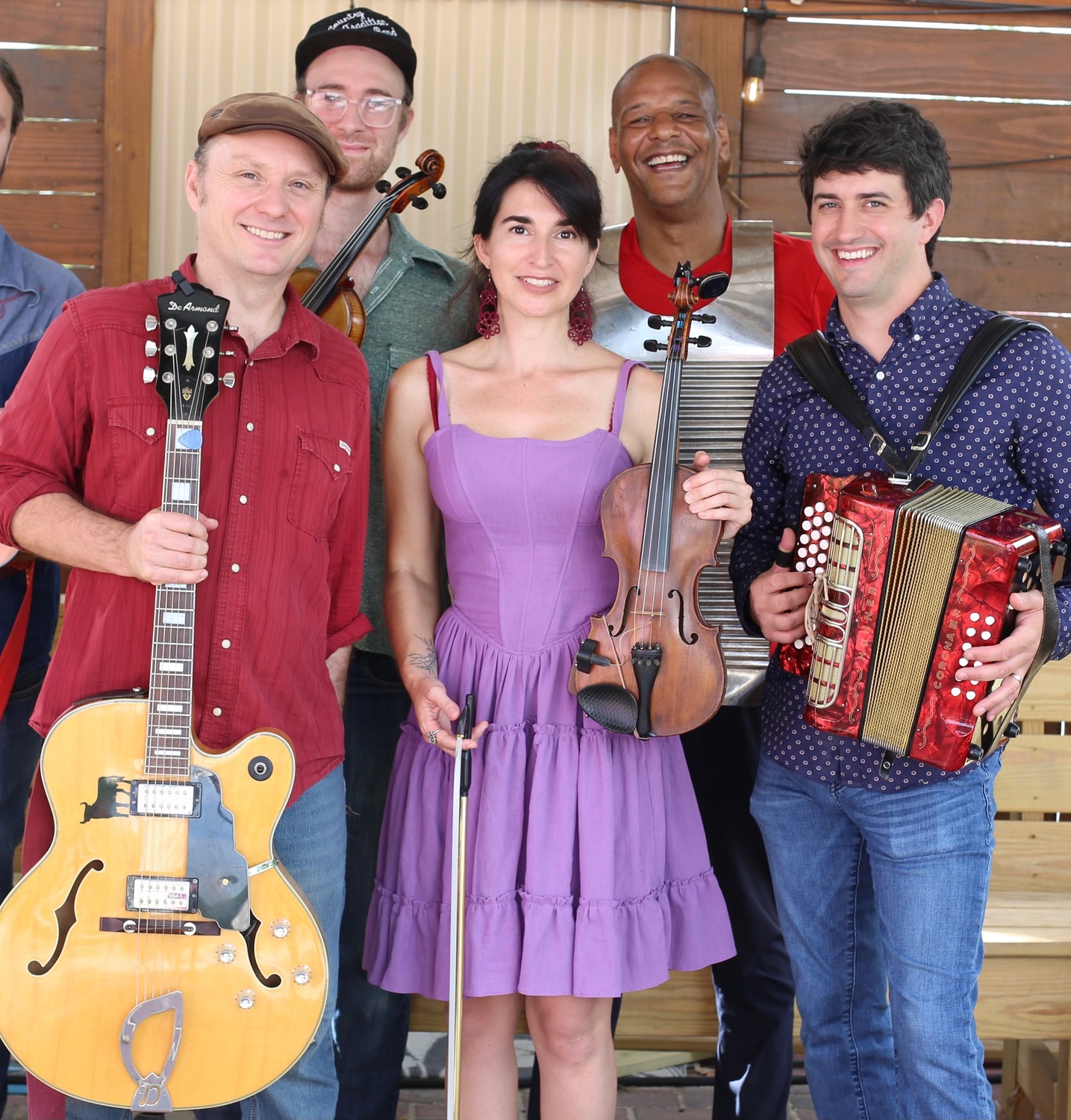 T Marie & Bayou Juju play traditional and original Louisiana music. In addition to honoring traditional Cajun, Creole, Zydeco, Swamp Pop, Country, Blues, and New Orleans songs, the band also contributes to the next generation of South Louisiana sound with their own original tunes, performed in both Louisiana French and English. The band started through gatherings at fires, suppers, porches, and levees, and you’ll feel this vibrant community of friendship echo through all of their music.
