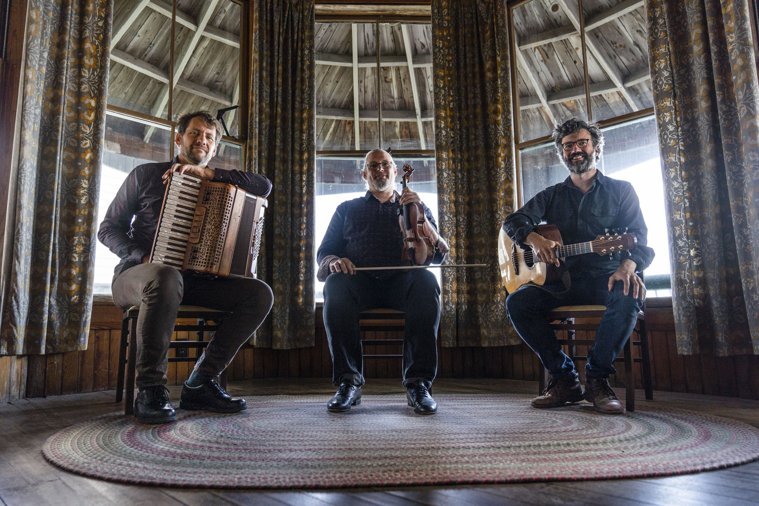 Pascal Gemme (fiddle) and Yann Falquet (guitar), the group’s two founding members, are both recognized individually as major contributors to the trad music scene in Québec. Since 2015, they have been joined by accomplished multi-instrumentalist and composer Nicholas Williams (flute, accordion). Weaving intricate fiddle, flute and accordion lines, gorgeous vocal harmonies, subtle guitar textures, and exhilarating foot percussion, the pleasure that these three musicians have creating and playing together is palpable, both in the studio and on the concert stage.