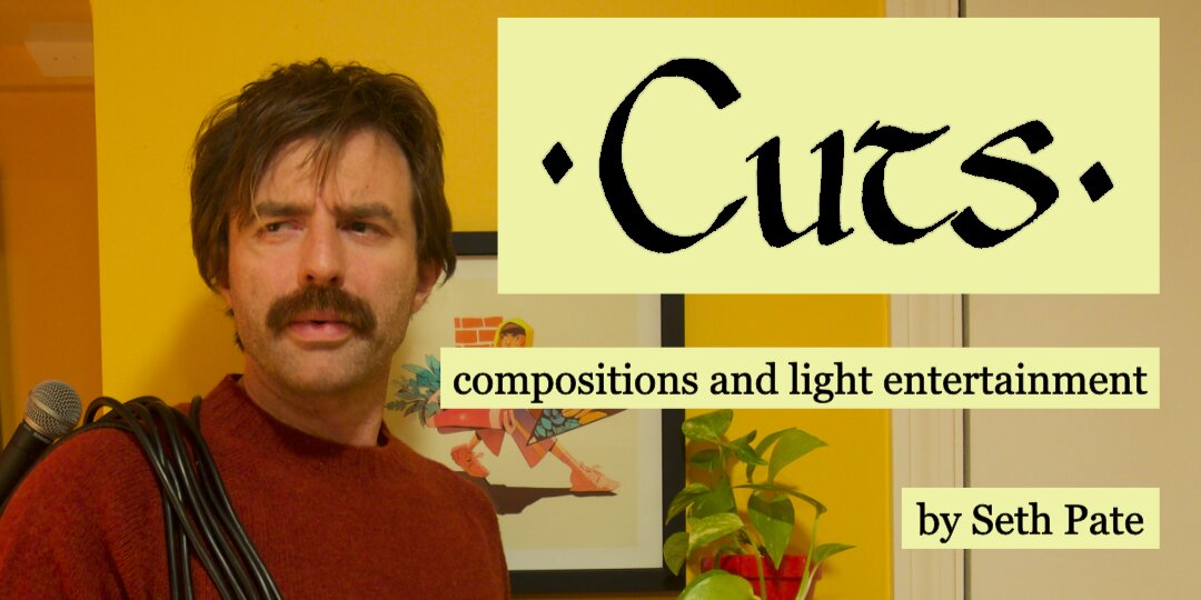 Cuts is a little cabaret show -- dark, quiet, and warm. Original tunes for voice, keyboard, bass, and some other stuff. Music by Seth Pate with a band of collaborators.