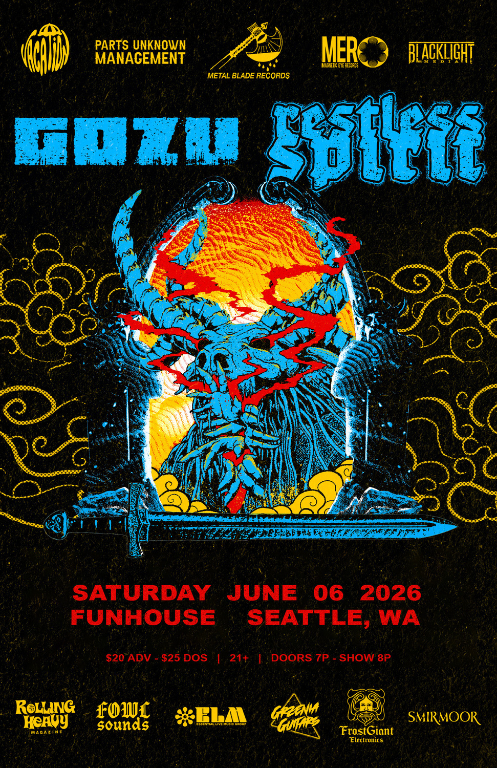 The singular band’s last album, 2023’s Remedy, was reviewed as an “utter triumph” and a praised for being “never too testosteroney, even when the songs are at their heaviest.” With Gozu VI, the lineup’s melding of intense, fuzzy 70s-inspired riffs, rich, catchy, grunge-esque vocal melodies and a touch of old school stoner psychedelia has reached a zenith. Gozu is a glad blend of genres, and incorporate so many of their influences that they Kick Ball Chain on the lines of a few genres. Categorize them how you will: “We don’t mind if people think we’re Stoner, Doom, Heavy, Easy listening with a touch of cayenne pepper. I feel we’re a Heavy Soulful Band,” Gaff says. “We play music that people can shake their ass to and lyrics that are honest and deal with human nature.”