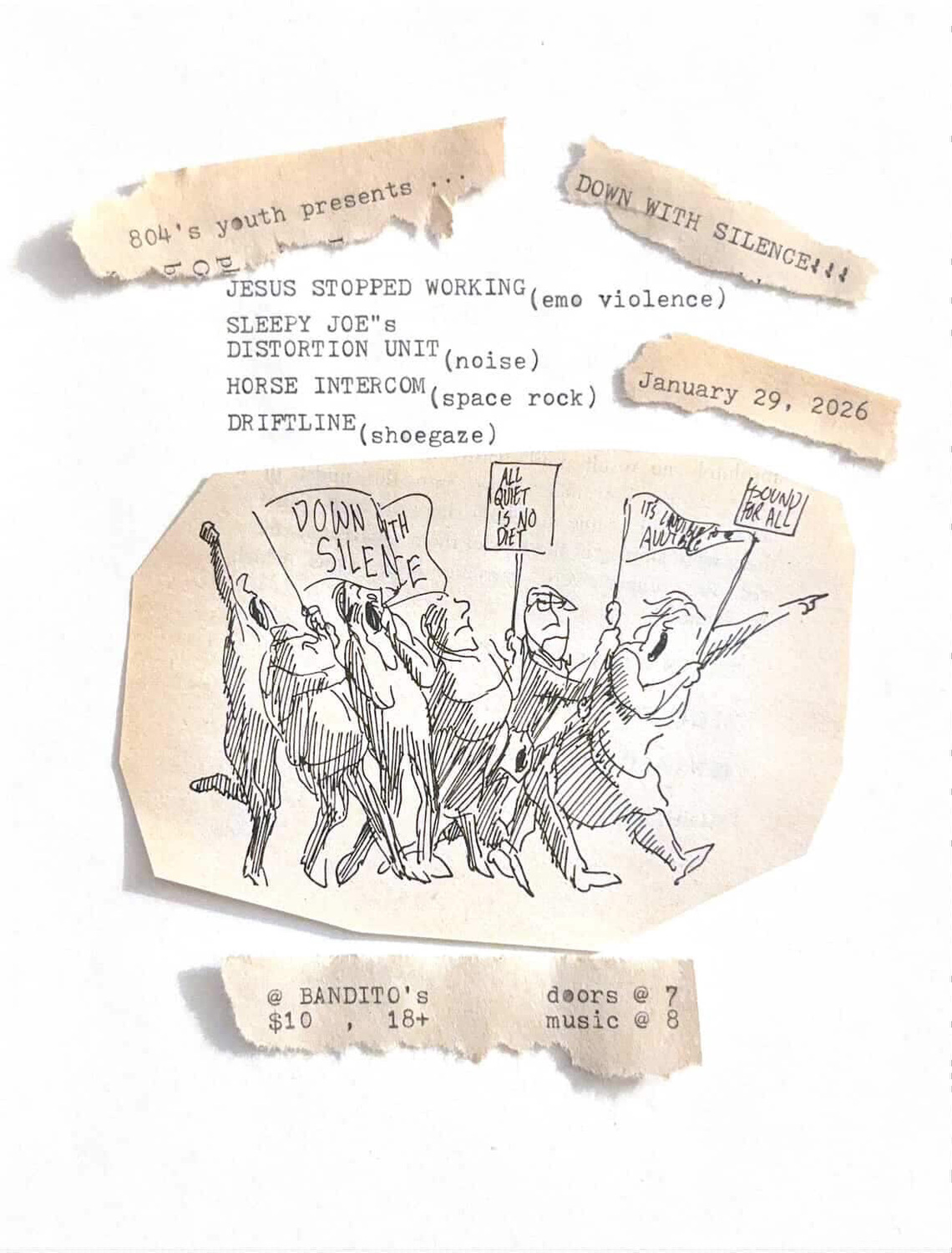 Jesus Stopped Working, Horse Intercom, Sleepy Joe's Distortion Unit, Driftline
