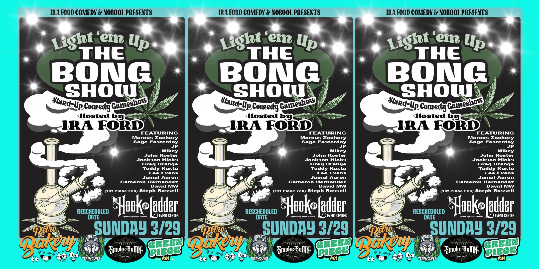 The Hook is teaming up with local comic/host/producer Ira Ford, our friends at Retro Bakery, Smoke SuMN, TerpWolves, Zen Arcade, Green Piece Minnesota and twelve very special Midwest comedians to present a live stand-up showcase/competition - Light ‘em Up, The Bong Show!