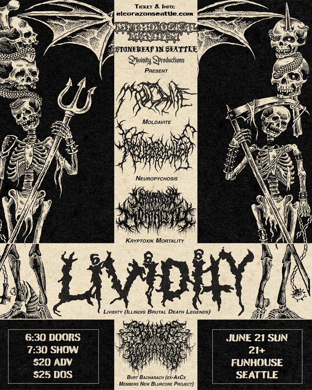 Mythological Mayhem & Stonedeaf in Seattle & Divinity Productions Present
