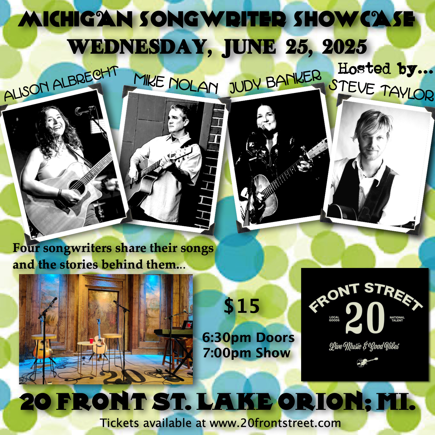 Michigan Songwriter Showcase hosted by Steve Taylor and featuring Alison Albrecht, Mike Nolan and Judy Banker