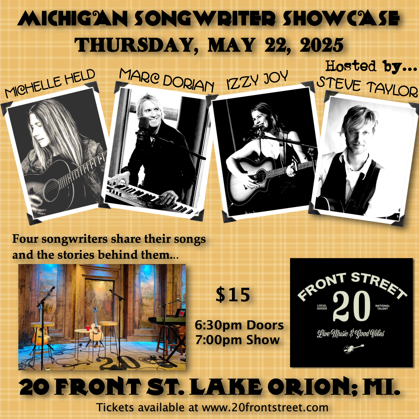 Michigan Songwriter Showcase hosted by Steve Taylor and featuring Michelle Held, Marc Dorian and Izzy Joy