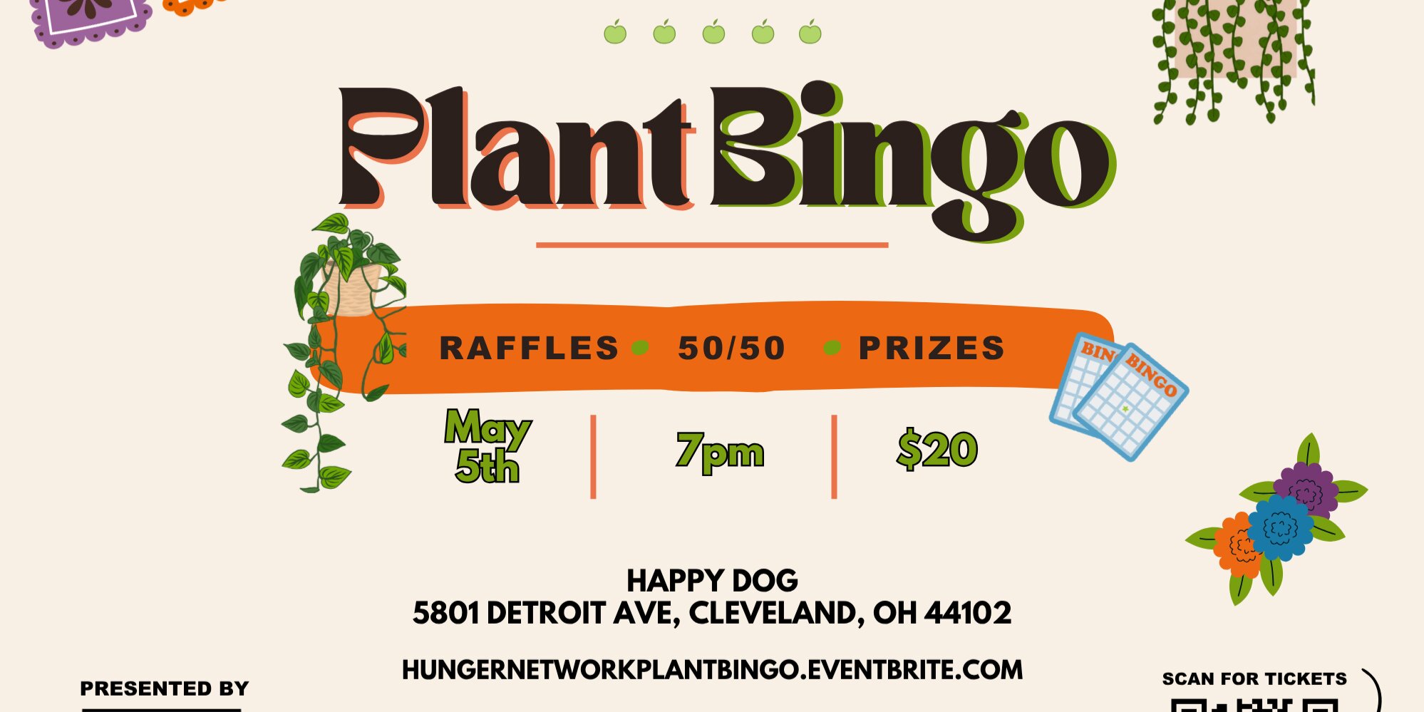 $20 ticket for 10 rounds of Bingo, with different plant and plant related prizes available each round! There will also be a raffle to win surprise themed baskets AND a 50/50 prize. 100% of the proceeds from ticket sales will benefit Hunger Network.