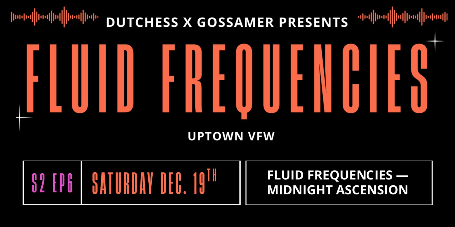 Get ready to dive into a night of wicked bass, bold creativity, and an incredible sense of community at S2E6: FLUID FREQUENCIES - MIDNIGHT ASCENSION! This December, we’re bringing together an all-woman, non-binary, and queer lineup of local artists, DJs, painters, flow artists, and vendors to create a night you won't forget.