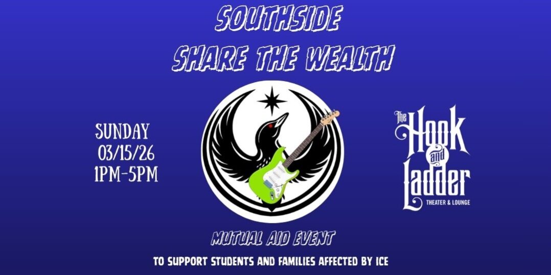 Join us for an evening of music, art, and collective care at Southside Share the Wealth — a mutual aid event uplifting students and families impacted by ICE.
