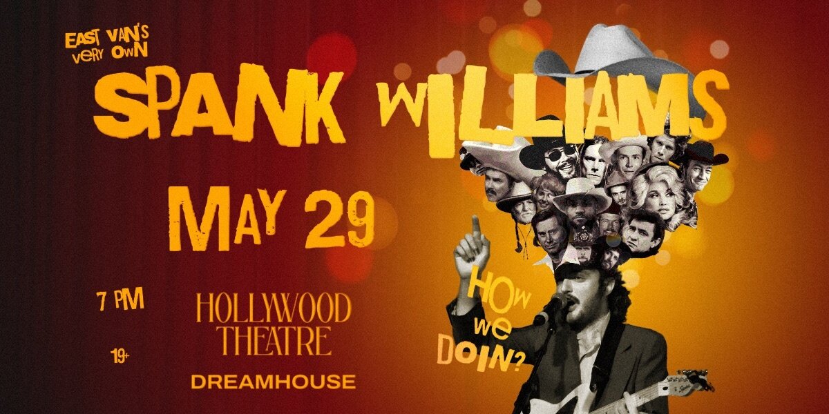 East Van's very own returns for one night only! Spank Williams will be playing live at the Hollywood Theatre May 29th, along with local legends Chopping Spree and Janky Bungag. Come out for a night of country, rock, cowpunk, ballads, and more.