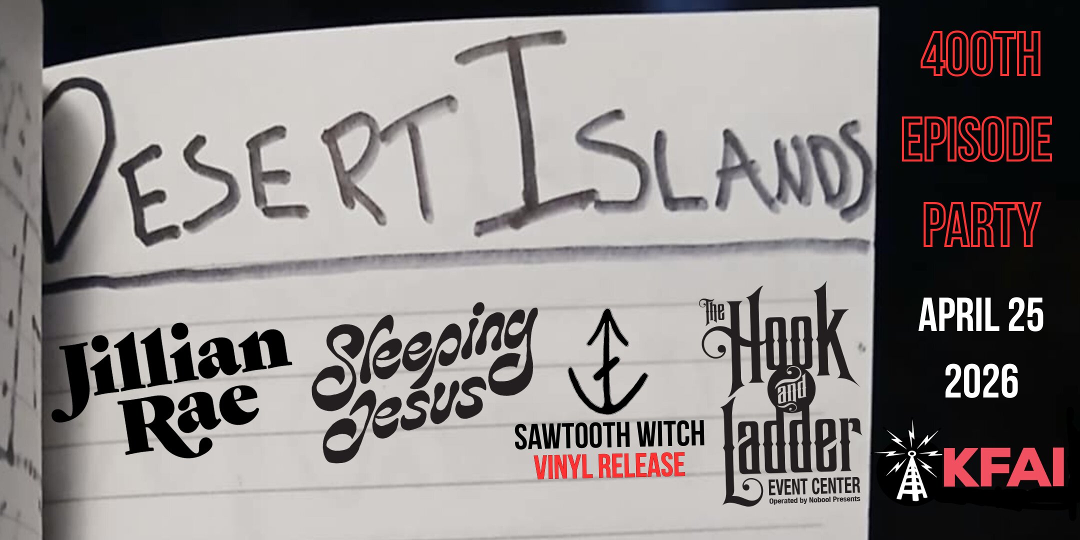 The Desert Islands 400th Episode Party! feat. JIllian Rae, Sawtooth Witch (Local Vinyl Release Show), & Sleeping Jesus