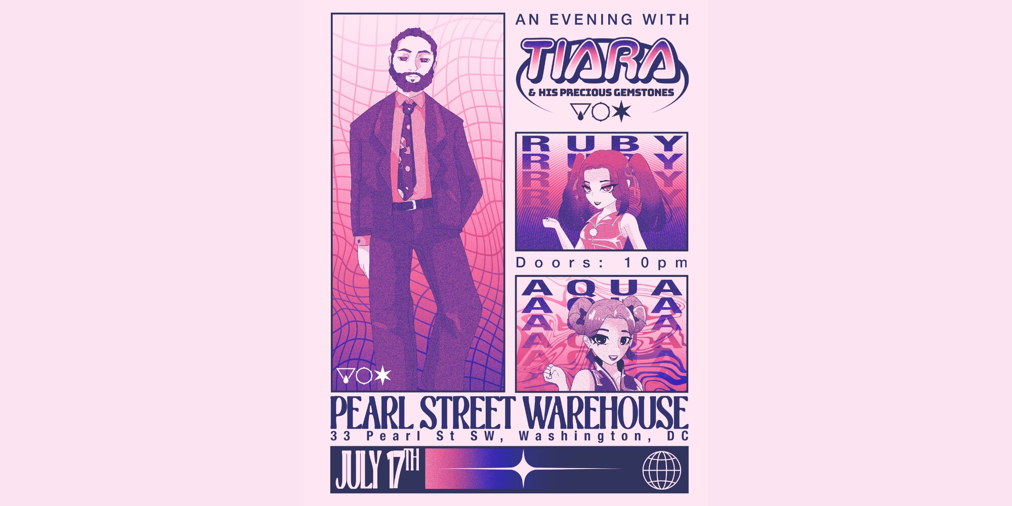 TIARA & His Precious Gemstones is a project built around a love for turning the dancefloor into something cinematic. Led by producer/DJ/drummer TIARA and brought to life by the spellbinding vocal chemistry and live choreography of AQUA and RUBY, the group bridges underground dance culture with pop-minded hooks while earning a reputation for sets that feel like a mix of a warehouse rave, live concert, and anime daydream. Known for high-energy performances (from sold-out headliners to main stages at Super MAGFest and NekoCon), TIARA’s music sits in a sweet spot between nostalgic dancefloor escapism and heartfelt storytelling.